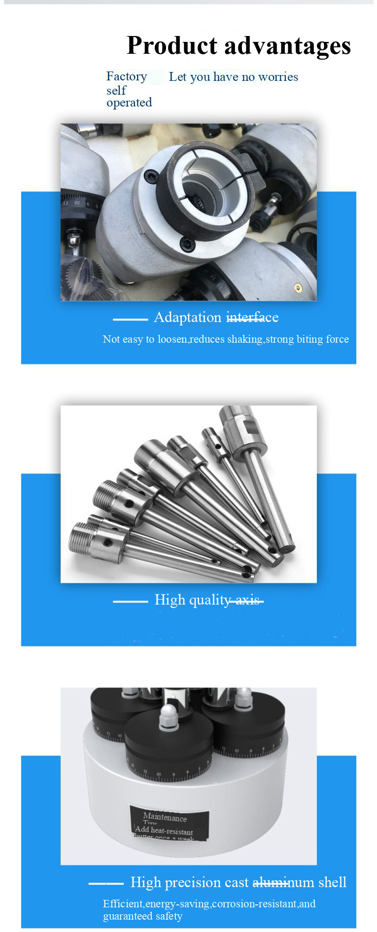 Wiertar wielokrotny, powszechnie znany jako wiertarka z wieloma otworami, wiertarka z wieloma wrzecionami, narzędzie do maszyny do wielu wrzecionych lub głowica wielokrotnego wrzeciona, jest nowym rodzajem urządzeń do przetwarzania otworów. W rzeczywistości jest to głowica Chucka zainstalowana na maszynach wiercenia i stukania, i może jednocześnie przetwarzać wywiercone lub stukane części na dwóch lub więcej osiach, więc nazywa się to maszyną wielopasmową. Wiertar wielopasmowy może jednocześnie przetwarzać wiele otworów na jednej płaszczyźnie i może być instalowane na różnych maszynach wiertniczych, takich jak ćwiczenia ławkowe i głowice zasilające do użycia. Jest to wydajne akcesorium maszynowe, które zwiększa wydajność i zmniejsza koszty, a jakość przetworzonych produktów jest stabilna.